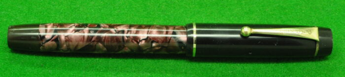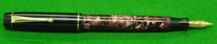 Rare Parker Victory Mark 1 wartime pen in Pearl Rose Marble with Black Hard Rubber cap and trim. Gold filled trim. This pen is in remarkable MINT Condition. Button Fill.  Fitted with the original 14kt gold ,Semi flex medium tipped nib. Extremely collectable Pen