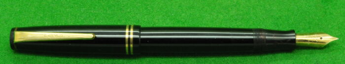 Victory Mark 5 in Black with gold fill trim. In MINT Condition . Aerometric fill. Fitted with the original 14kt Medium tipped nib.