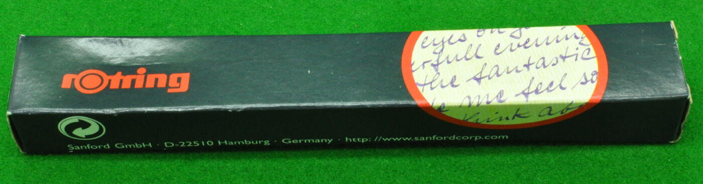 Rotring 400 Rollerball in Satin Metallic Green. New Old Stock in original Box. Never used.