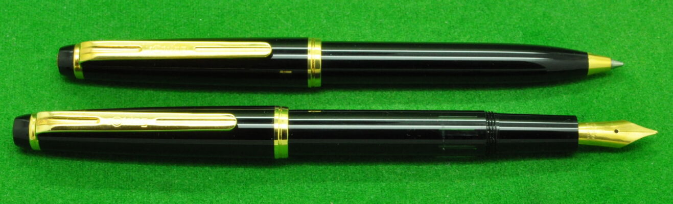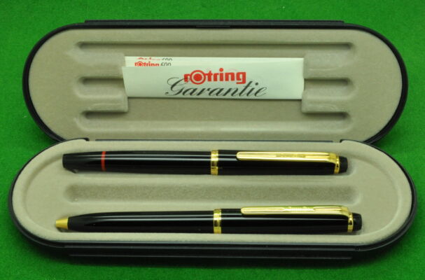 Rotring Renaissance SET in Black with Gold fill trim. Fountain Pen and Ballpoint. Both MINT Unused in original Box. Fountain Pen – Piston fill, fitted with the original fine tipped nib.