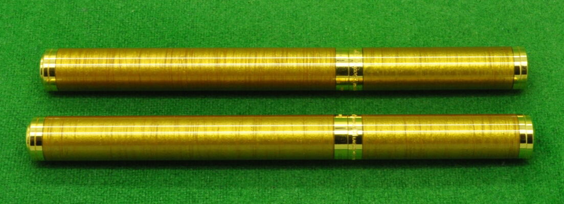 Beautiful S T Dupont Lady Mascara SET in Amber Silk Shantung Chinese Lacquer. Fountain Pen and Rollerball. Both in MINT Unused Condition. Fountain Pen fitted with the original 18kt gold medium tipped nib. .