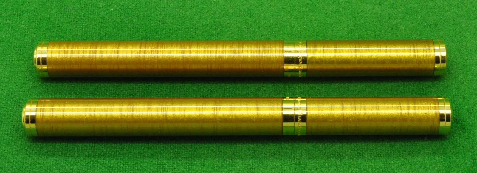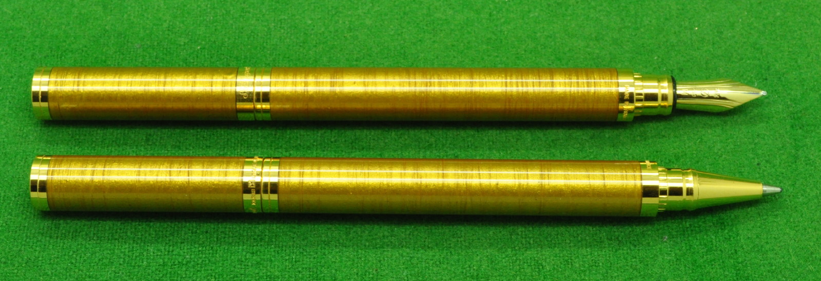 Beautiful S T Dupont Lady Mascara SET in Amber Silk Shantung Chinese Lacquer. Fountain Pen and Rollerball. Both in MINT Unused Condition. Fountain Pen fitted with the original 18kt gold medium tipped nib. .