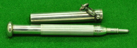 Scarce Sampson & Mordan drop action Cedar Holder in Sterling Silver. Unusual Chester Hallmark dating the piece to 1922. In Perfect condition. Measures 75 mm without pencil extended.