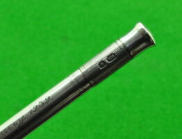High Quality Sampson Solid Sterling Silver Pencil . Advertising “Spencer & Abbott & Co” Coal Merchants. Fully Hallmarked and dated 1936. In Perfect condition. Full Size Heavy Pencils Measures 120 mm long. Takes 1.8 mm lead.
