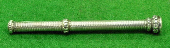 Beautiful Little Telescopic Sterling Silver Pencil by Mordan complete with silver case. In Perfect condition. Measures 45 mm closed and 72 mm when nozzles extended. Superb quality Item.
