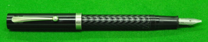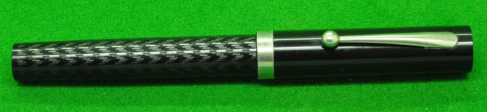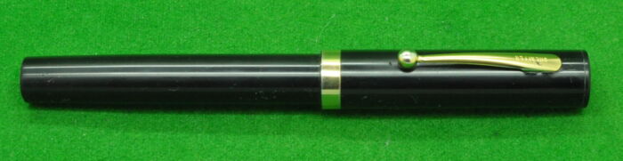 Sheaffer No Nonsense Old timer with Chased Black Barrel and Gold filled trim. In  MINT Condition. Fitted with the original Broad Italic Nib giving a wonderful writing style.