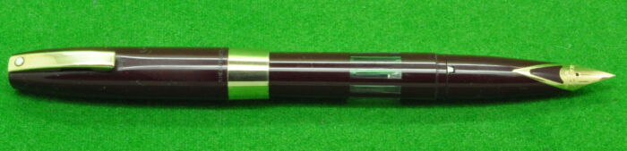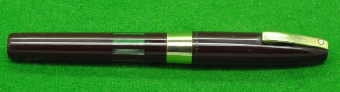 RARE Sheaffer Compact II in Burgundy with gold filled trim. In Near Mint Condition. Early Model with Ink View Windows. Cartridge fill.  Fitted with the original 14kt gold  medium tipped nib.