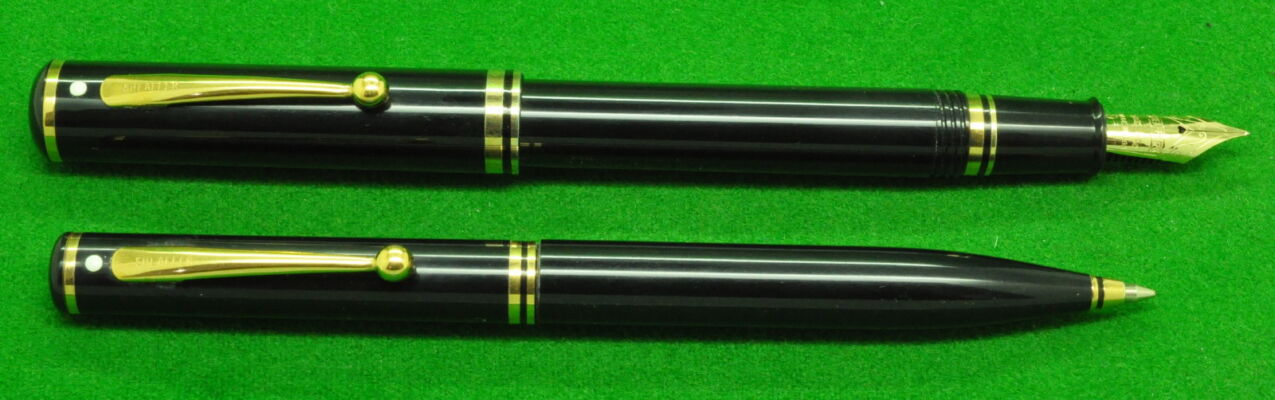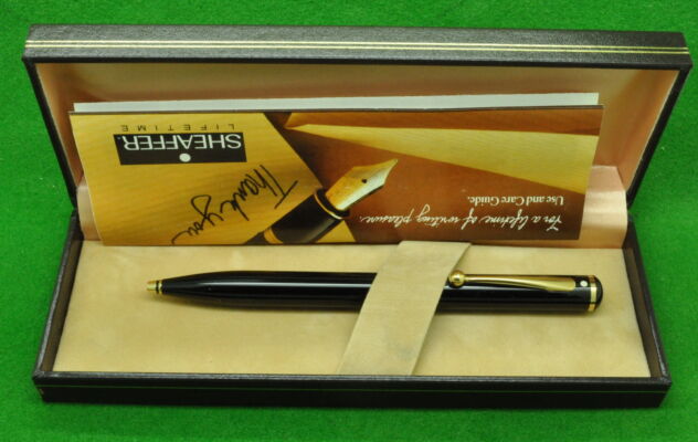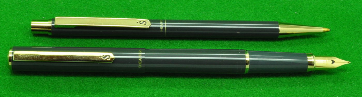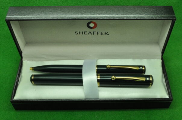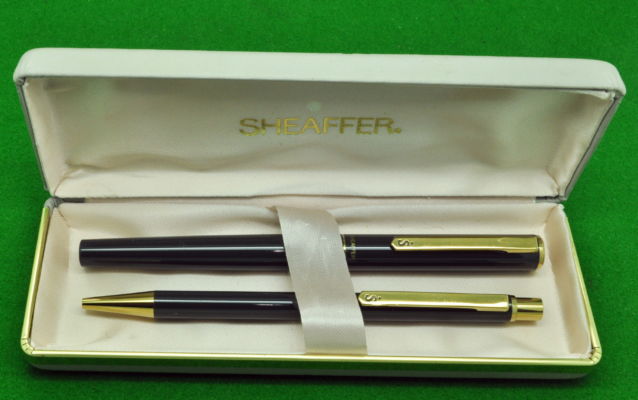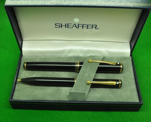 Sheaffer Connaisseur 810 Set in Black with gold filled trim. Fountain Pen and Ballpoint – both in Absolute Mint condition. Fountain Pen fitted with the original 18kt gold medium to fine tipped nib