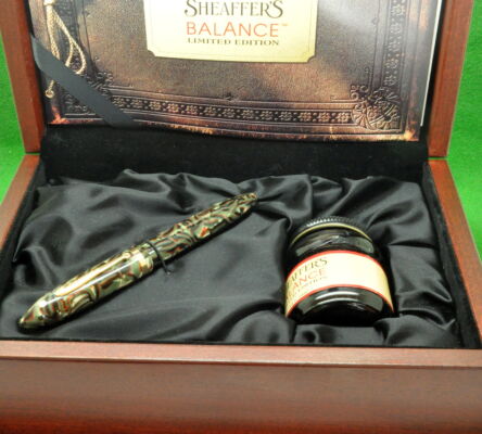 Sheaffer Balance 2 Limited Edition in Stunning Multi Colour with Gold filled trim. one of only 6000 made. In MINT Unused condition in original Wooden Presentation Box with Ink, Paperwork and Outer box. Never Inked. Fitted with the original twin tone 18kt gold medium to fine tipped nib. Highly collectable, heavy, exceptional quality pen.