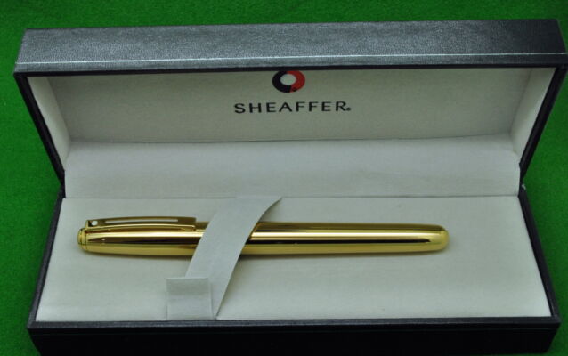 Sheaffer TRZ in Satin Black with gold fill trim. In Mint Condition. Cartridge fill but complete with original Converter. Fitted with the original Medium tipped nib.