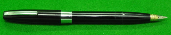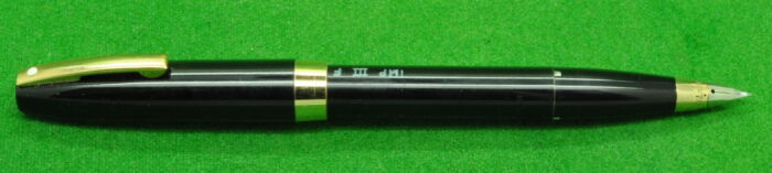 Sheaffer Imperial Mark 1 in Black with gold filled trim. In Absolute Mint condition with chalk marks. Touchdown fill. Fitted with the original medium tipped nib.