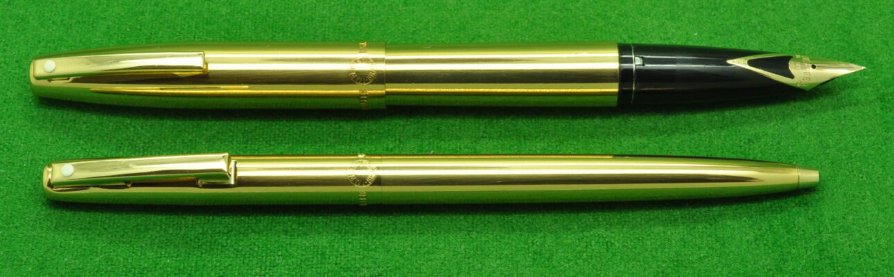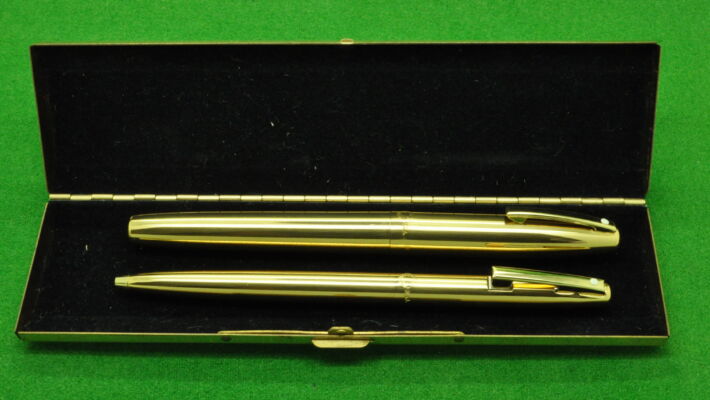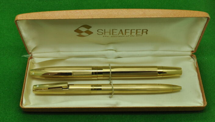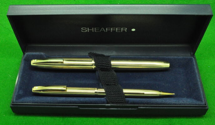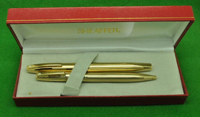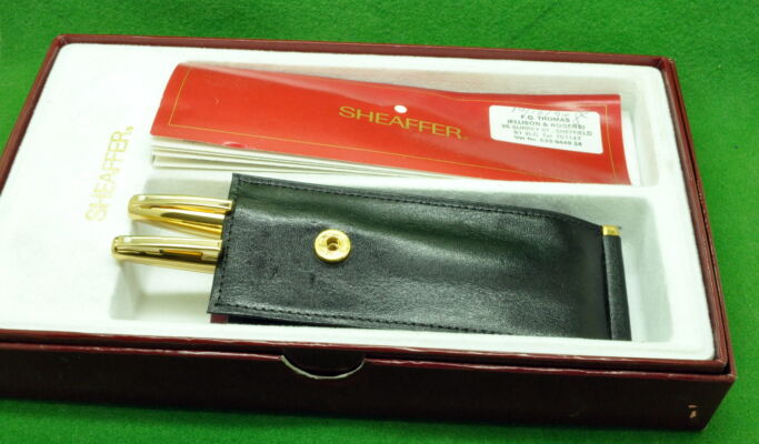 Sheaffer Imperial SET in Fine Line Gold fill. Fountain Pen and Ballpoint. Both In Absolute MINT condition in original box. Fountain Pen fitted with the original medium tipped nib. Cartridge fill but complete with converter