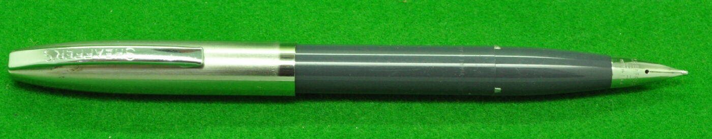 Sheaffer Imperial Mark 2 Touchdown fill in Grey with Brushed Stainless Cap. This pen is in remarkable MINT Unused condition with original chalk marks. Never Inked. Fitted with the original Triumph Palladium medium tipped nib.