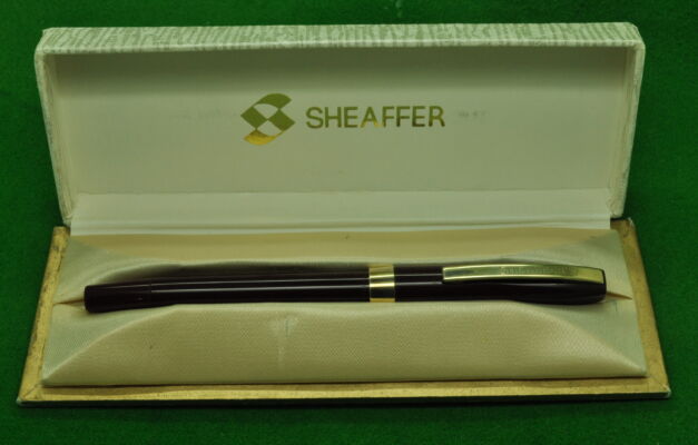 Sheaffer Imperial Mark 2 in Black with Gold filled trim. MINT condition . Cartridge fill and complete with original Converter . Fitted with the original, Scarce Ultra Broad tipped nib giving a wonderful writing style.
