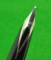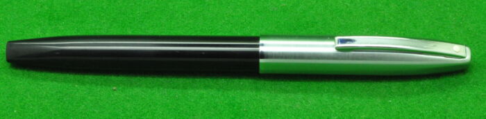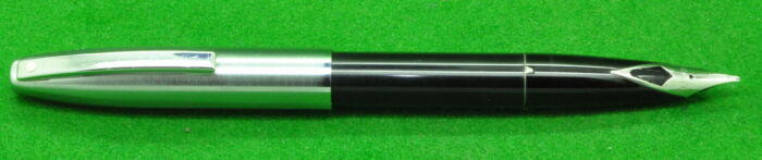 Sheaffer Imperial IV in Black with stainless Cap. In MINT Condition. Cartridge fill but fitted with converter. Fitted with the original, scarce , 14kt left oblique italic nib giving a wonderful writing style
