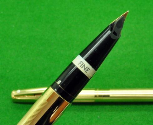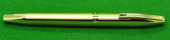 USA Sheaffer Imperial in Gold fill, Parallel line Pattern. In Absolute MINT condition. Cartridge fill but complete with converter. Fitted with the original 14kt gold medium to fine tipped nib.
