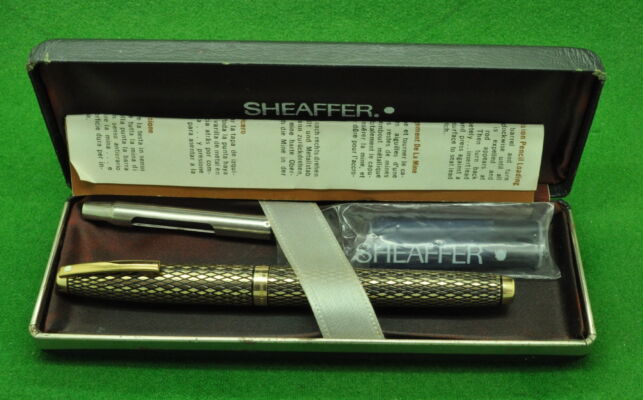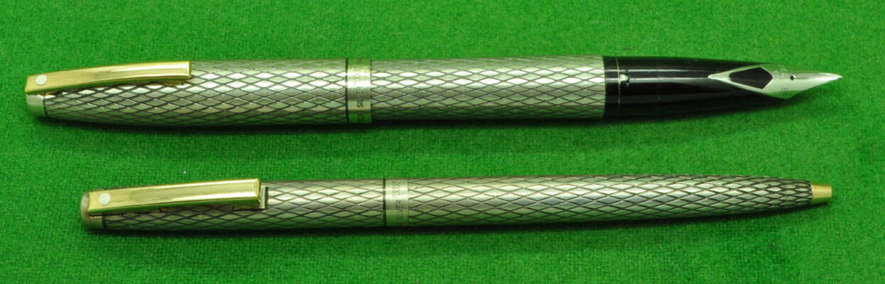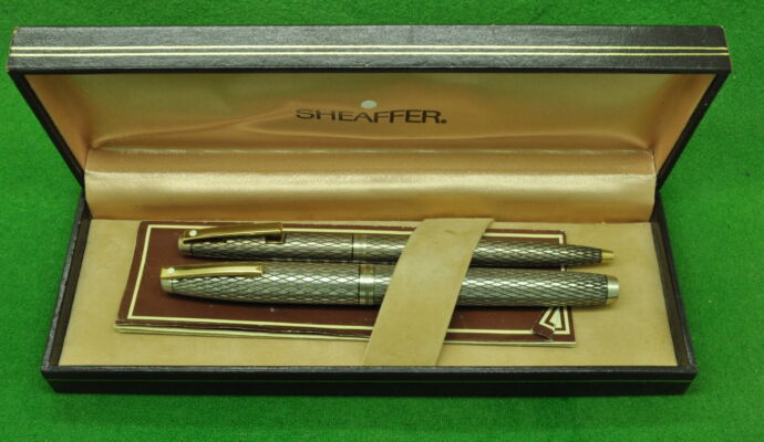 Sheaffer Silver Imperial SET in Solid Sterling Silver with Diamond cut Pattern. Ballpoint and Fountain Pen both In MINT Condition. Fountain Pen Fitted with the original medium to fine tipped nib.