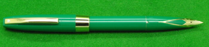 Sheaffer Triumph Imperial in Green with Nickel Silver Trim. In absolute Mint Condition. Cartridge fill. Fitted with the original fine tipped nib