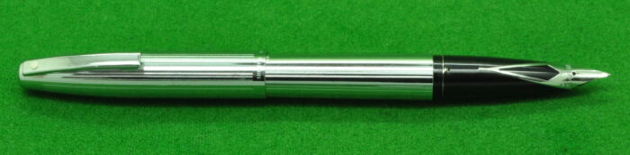 Sheaffer Triumph Imperial in Chrome with Line Pattern. In Mint Condition. Cartridge fill. Fitted with the original medium tipped nib