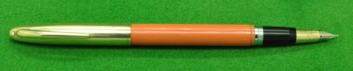RARE Sheaffer Snorkel Crest in Mandarin Orange with Gold filled cap.  In Near MINT  condition . Fitted with the original 14kt gold medium  tipped nib.