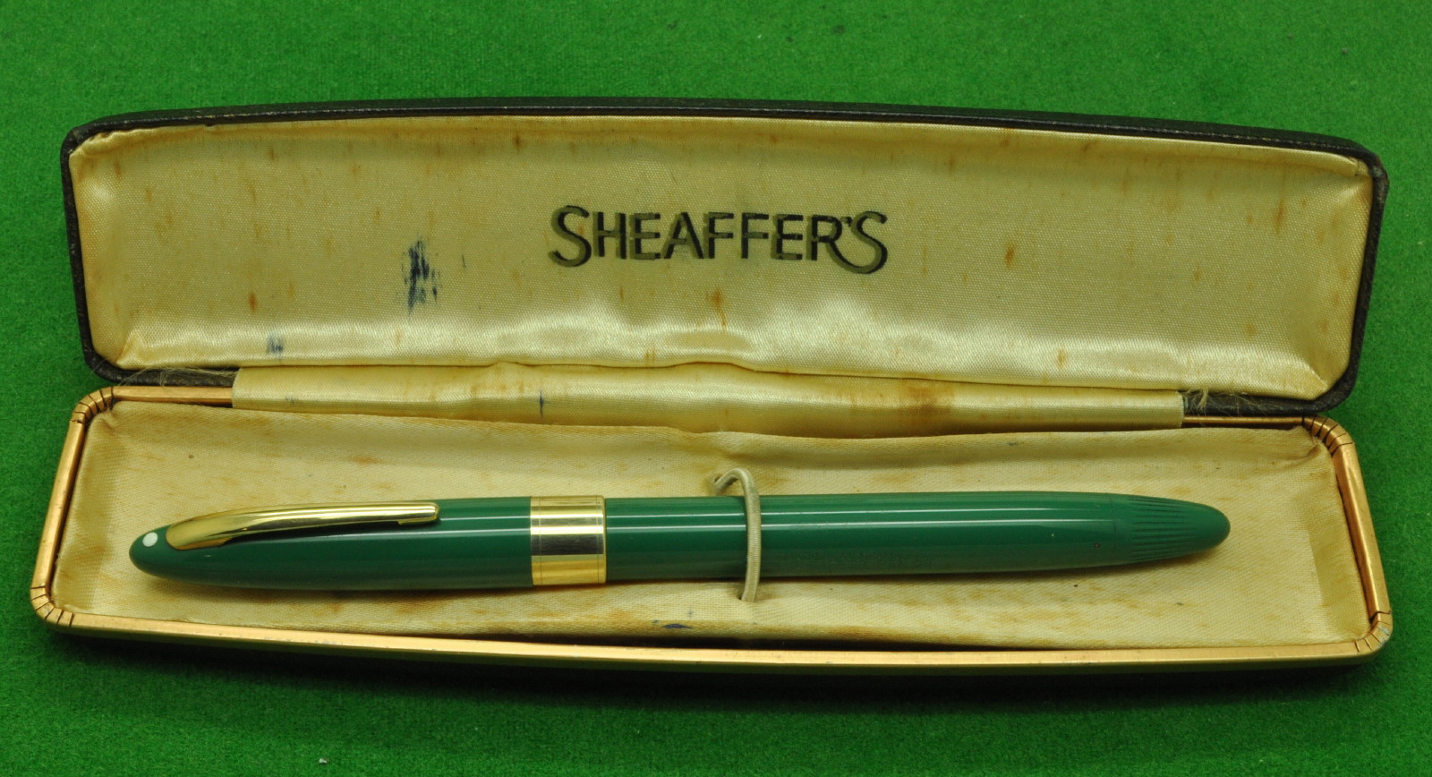 Sheaffer Statesman  in Scarce Pastel Green with gold filled trim. In Absolute MINT Unused Condition in original Box . Fitted with the original Palladium  very smooth Medium tipped nib