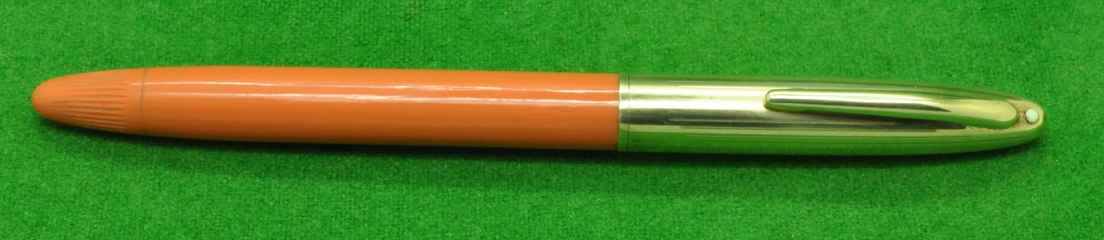 RARE Sheaffer Snorkel Crest in Mandarin Orange with Gold filled cap.  In Near MINT  condition . Fitted with the original 14kt gold medium  tipped nib.