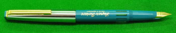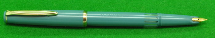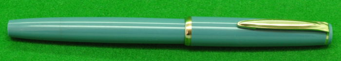 Selector 62 in Pale Teal Green with gold filled trim. In Absolute MINT Condition. Piston fill. Fitted with the original 18kt gold medium to fine tipped nib.