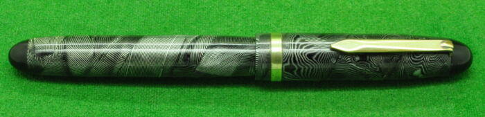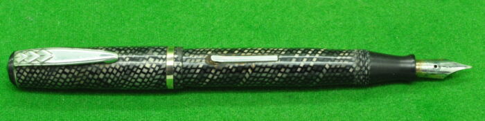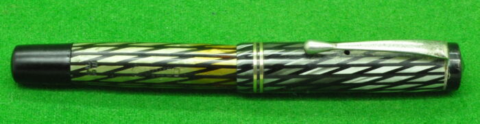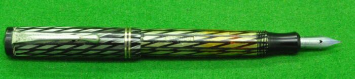 RARE Osmia 64 EF In Pearl and Diagonal Black Stripes. In Perfect condition. Piston fill. Wartime pen fitted with an extra fine, smooth Steel Nib.