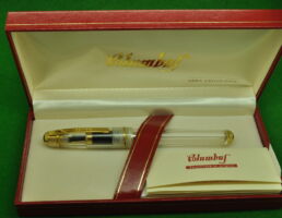 Columbus Progetto Demonstrator in clear with gold filled trim. In Mint condition in original Box. Fitted with the original semi flex medium to fine tipped nib.