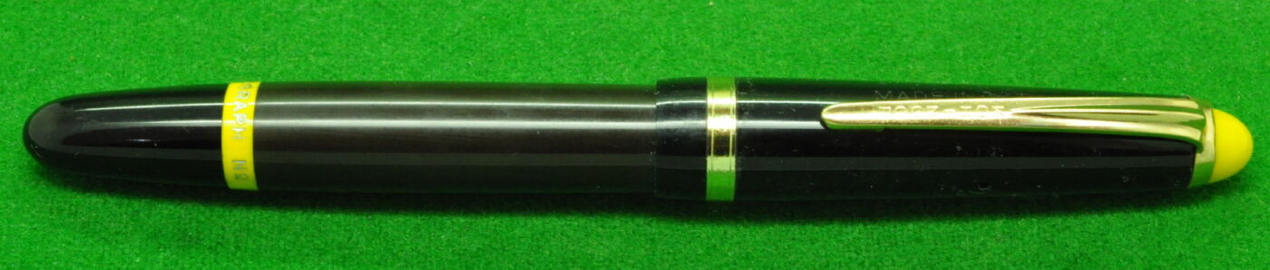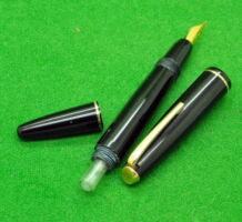 Ludo 57 in Black with gold filled trim. In Near Mint Condition. Button fill. High Quality Pen. Fitted with the original, semi flex, 18kt gold medium to fine tipped nib.