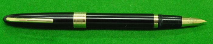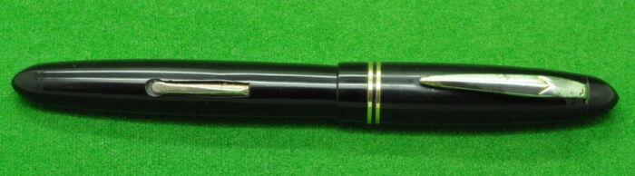RARE Penco in Black with Gold filled trim. In Perfect condition. Vacumatic fill. Fitted with the original 14kt gold tubular medium to fine tipped nib. Superb Quality only made for a few years as Sheaffer Sued them as the pen was too similar to their pens!