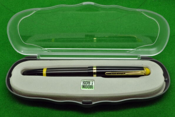 Koh-I-Noor Stylograph Pen in Black with gold filled trim. In Near Mint condition in original Box. Piston Fill. Works Perfectly.