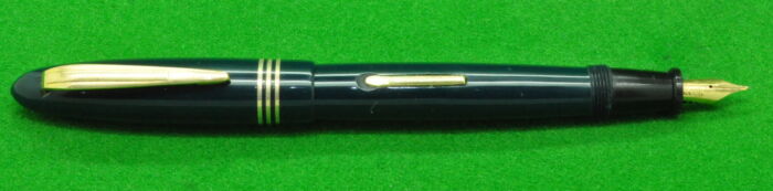 Bayard Excelsior 562 in Green With gold filled trim. In Absolute MINT Condition. Lever fill. Fitted with the original 18kt gold semi flex medium tipped nib.