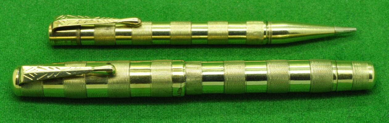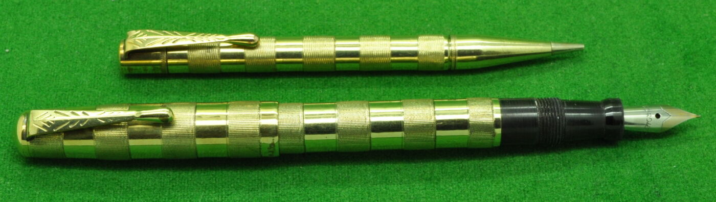 RARE VFM Omega Set in 18kt gold fill. Fountain Pen and Pencil. Both in Perfect Condition. Fountain Pen, Button fill, fitted with a later Steel, super smooth medium tipped Nib. Beautiful set .