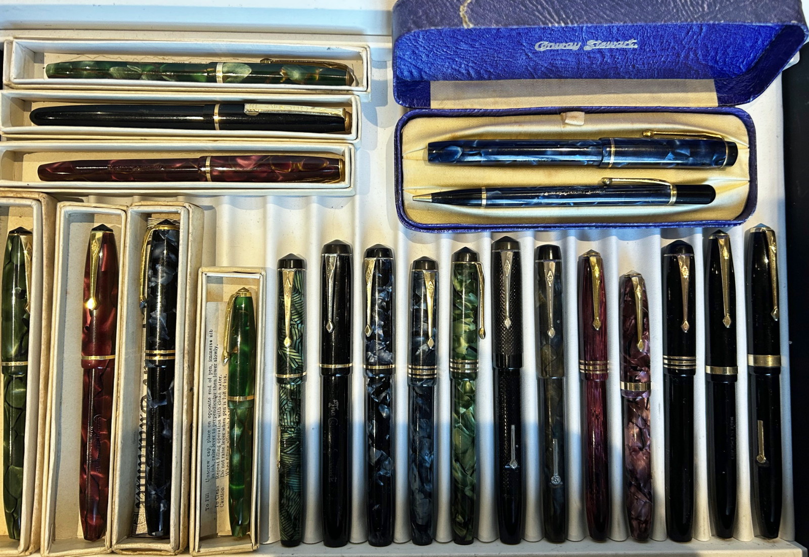 Wonderful large Collection of Conway Stewart Fountain Pens added. All fully restored ,some with Italic Nibs , some in original Boxes