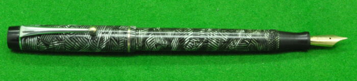 In the early 1930’s Valentine began making pens for other, mainly foreign companies including Parker, for whom they made a range of streamlined Duofolds and Victories and used similar materials to expand their own range of very colourful pens. The late 1930’s saw a beautiful range of semi transparent and flecked materials , some with black caps. These were own brand and Parker pens