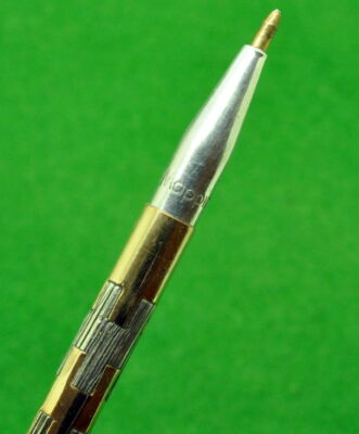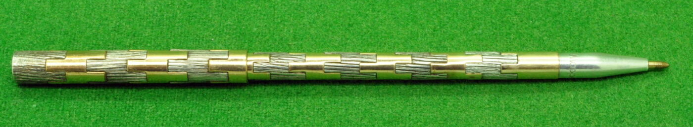 RARE Mappin and Webb Purse Ballpoint Pen in Sterling Silver with solid gold patterned Overlay. In Perfect Condition. Takes Standard Ballpoint refills, readily available. Measures 111mm Long capped. Exceptional, high quality item