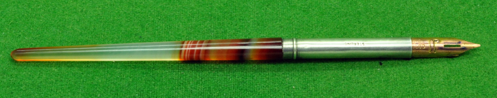 Beautiful Dip Pen in Sterling Silver and Agate . In Perfect Condition. Measures 140 mm Long. High Quality Item