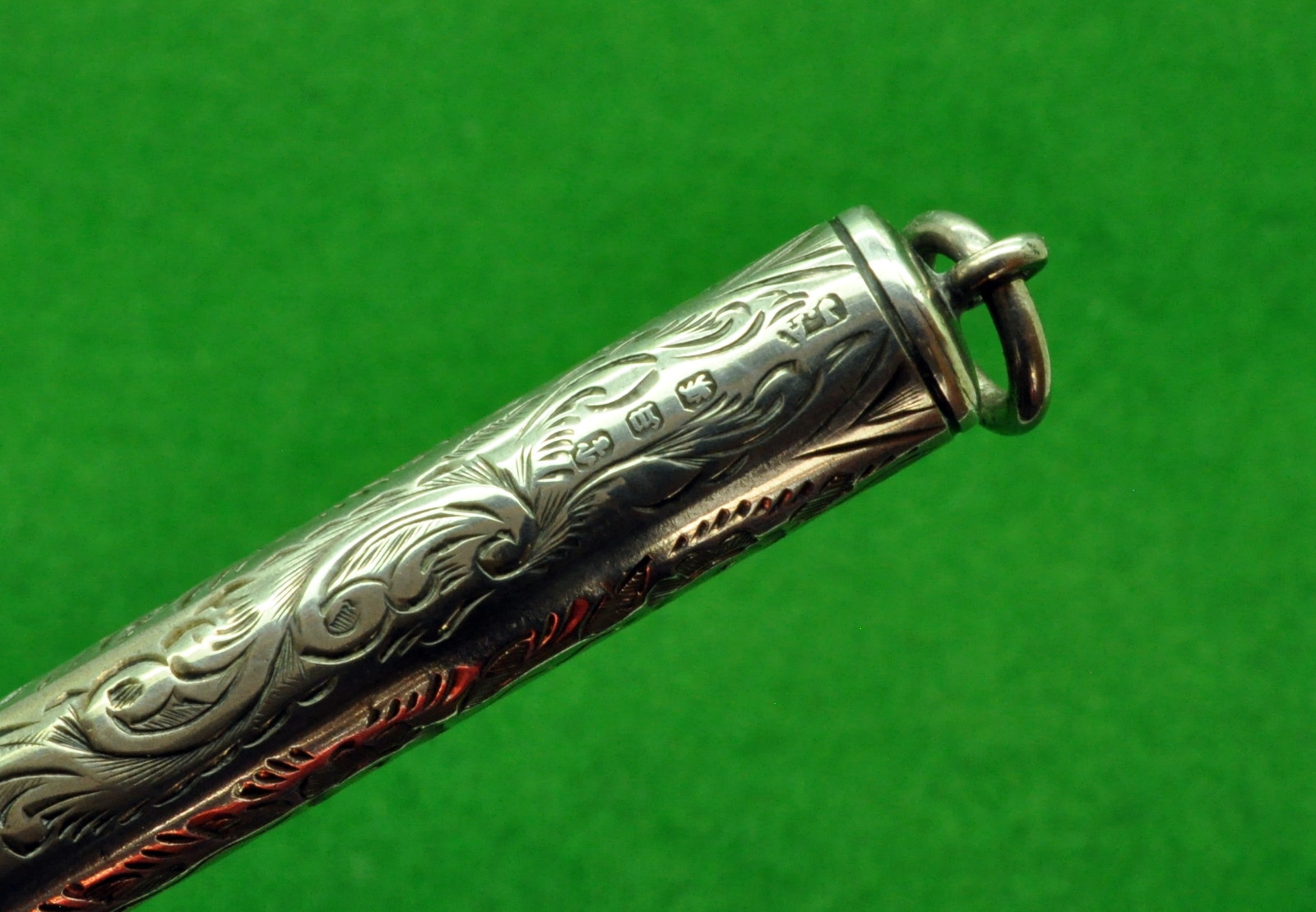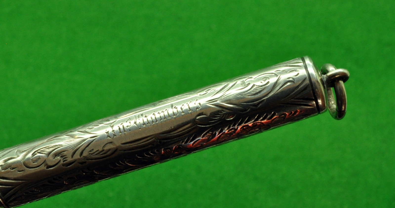 Stunning Early Victorian Solid Silver Slide Pencil in Hand engraved Floral Decoration with Beautiful Orange finial Stone . In Remarkable Near MINT Condition. Large Size Pencil Measuring 94 mm long closed and 123 mm extended.