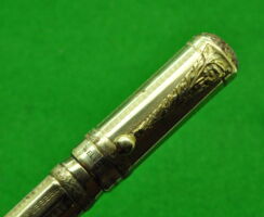 Italian Wellcome Safety Pen in 18kt gold fill, fine wave pattern. In Perfect Condition but with some small areas of brassing.. Fitted with the original 14kt gold full flex fine tipped nib . Measures 124 mm long capped