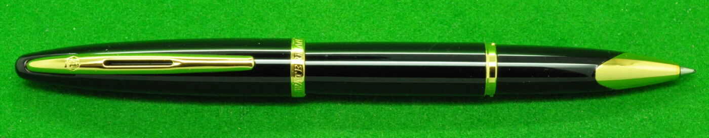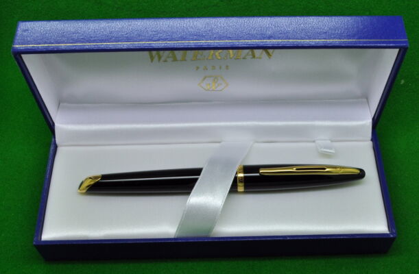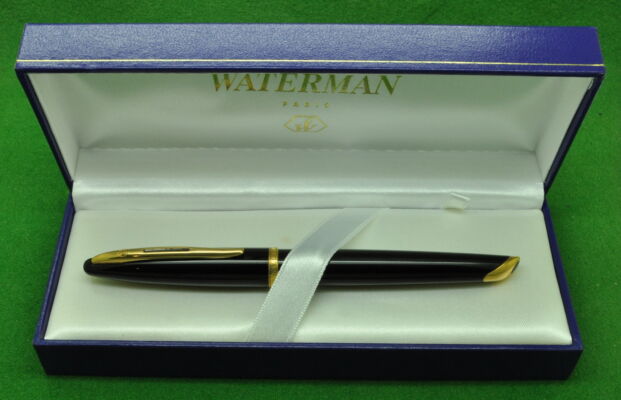 Waterman Carene in Black Laque with gold filled trim. In Absolute MINT Unused Condition in original Box. Fitted with the original 18kt gold medium tipped nib