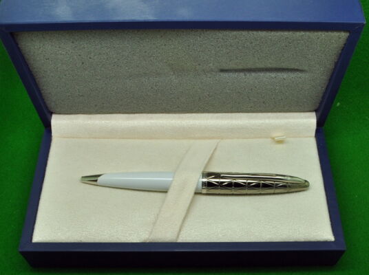 Beautiful Waterman Carene Deluxe Ballpoint in White With Palladium Cap IN Mint Unused condition in original box.