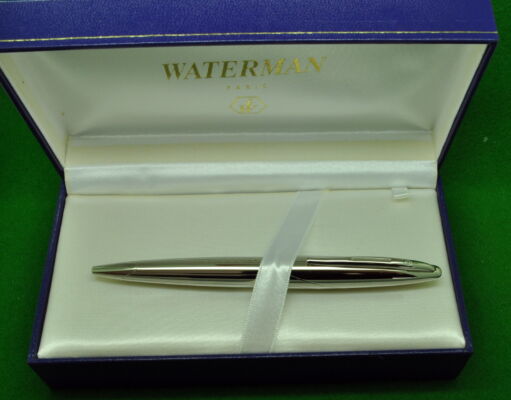 Beautiful Waterman Carene Silver Meridian Ballpoint in Palladium fill. IN Mint Unused condition in original box.