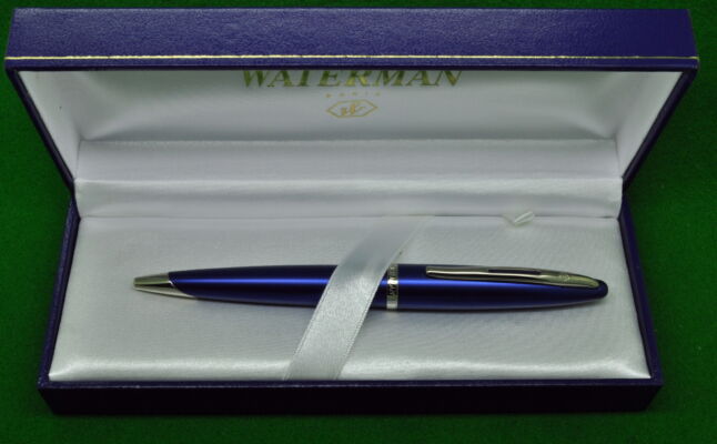 Waterman Carene Ballpoint in Satin Blue with Chrome Trim. In Mint Unused condition in original box.