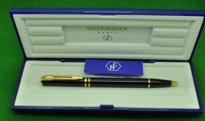 Waterman Laureat Ballpoint in Black Laque with gold filled trim. In Mint Condition in original Box.