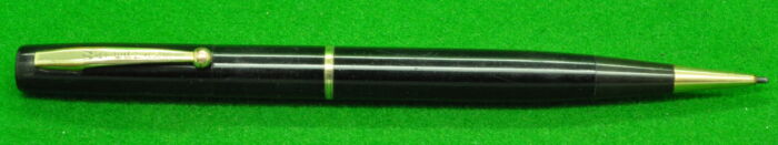 Early Canadian  Watermans Pencil in Black  with gold filled trim.  In Perfect Nr MINT condition