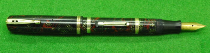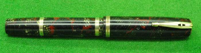 Stunning RARE Watermans 92V in Dragon Skin with gold filled trim. In Near Mint Condition . Fitted with the original 14kt gold Full flex medium tipped nib giving a wonderful writing style.
