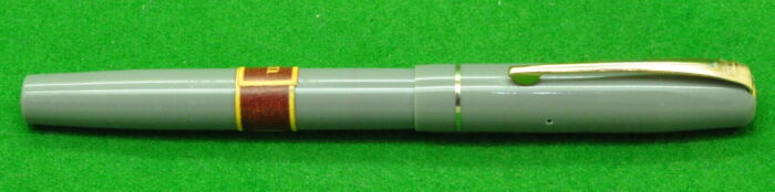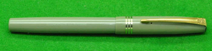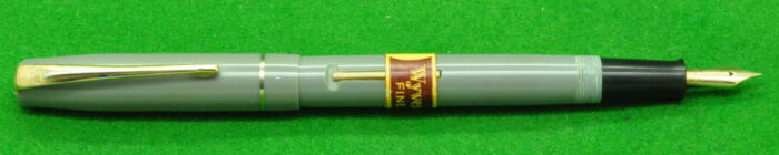 Wyvern Prefect in Grey with gold filled trim. In Absolute MINT  Unused condition with original Label.   Fitted with the original 14kt gold, very smooth, semi flex fine tipped nib.
