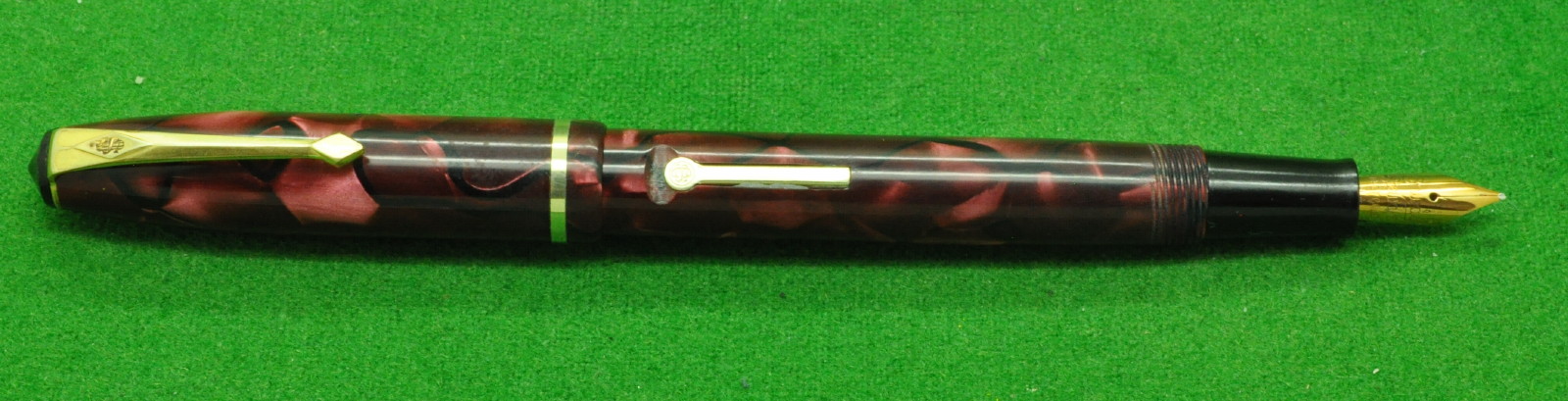 Conway Stewart 28 in Lined Burgundy Marble with Gold filled trim. In Absolute Mint Condition . Fitted with the original 14kt gold, semi flex Medium to fine tipped nib.