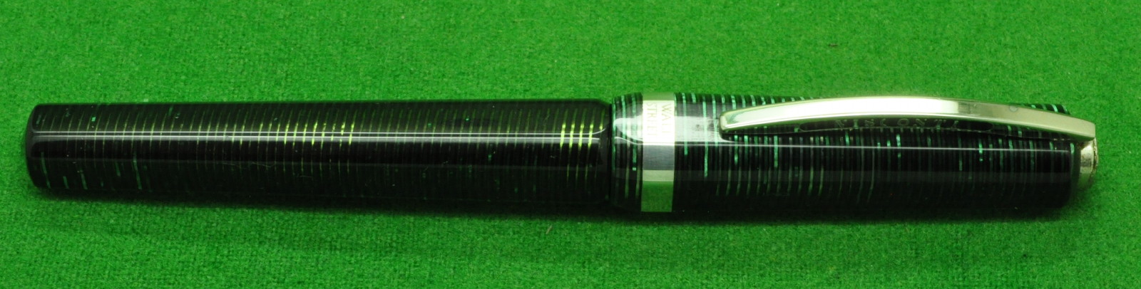 Stunning VISCONTI Wall Street in Transparent Green with Silver Cap Band and Deep Chrome Trim. In Absolute MINT Unused Condition . Cartridge fill but fitted with the original Wall Street Converter. Fitted with the original white 14kt gold semi flex medium tipped nib. These pens are now no longer made and are highly sought after